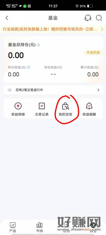 图④ 图二完成后不是开启了两个定投吗 日期尽量选晚一点 我是设置的每月20几号 抽完奖后取消 我的 总资产 进去找到资金页面 然后如图④圈出的 进去终止就行