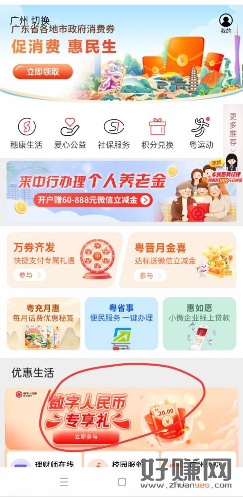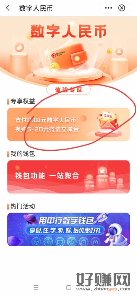 中行5元立减金,数字人民币支付0.01。城市服务进入数字人民币专区。