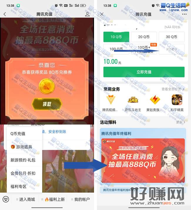 腾讯任意消费抽最高888Q币 亲测8Q币秒到