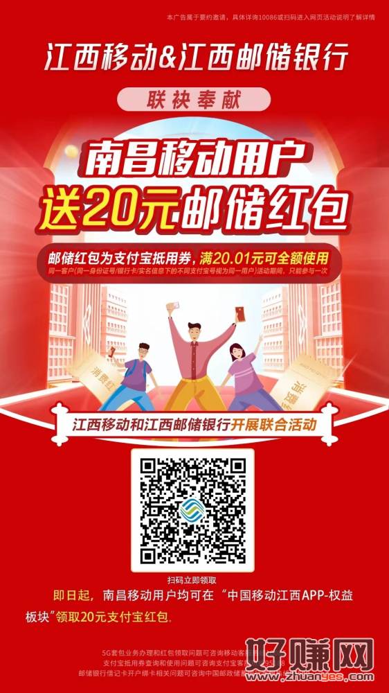 活动仅限有江西南昌移动卡、江西邮政储蓄卡领取