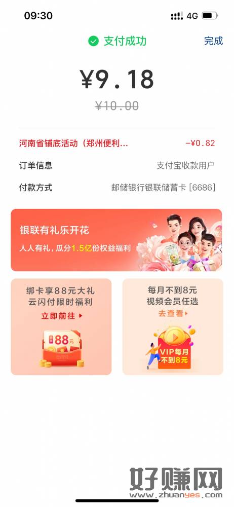 云闪付扫自己的zfb收款码随机减