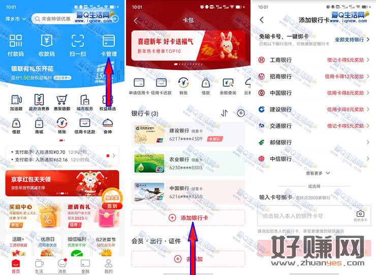 这个活动每日有名额限制,云闪付去绑定没有绑过的工行卡,二类、三类卡都可以