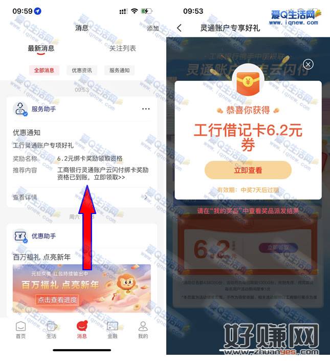 云闪付新绑工行卡领6.2元银联立减券 可线上线下使用