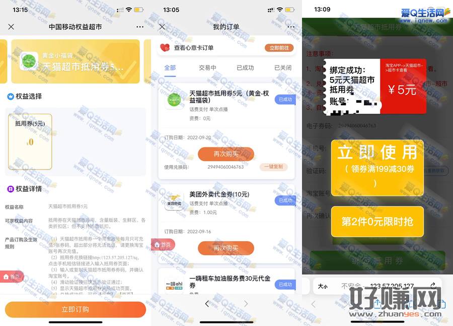这个活动是移动黄金会员的可以去领取一下,可以领5元天猫超市卡,兑换是秒到的