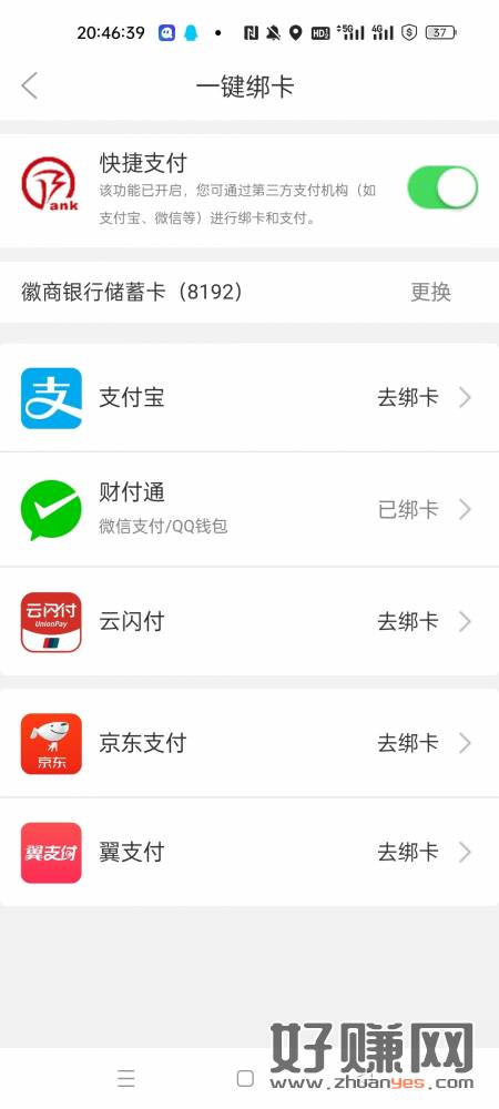 微商银行搜索窗口搜索一键绑卡,绑定微信,从银行入口绑定第一次