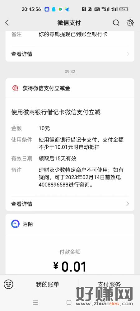 微商银行搜索窗口搜索一键绑卡,绑定微信,从银行入口绑定第一次都有10立减金