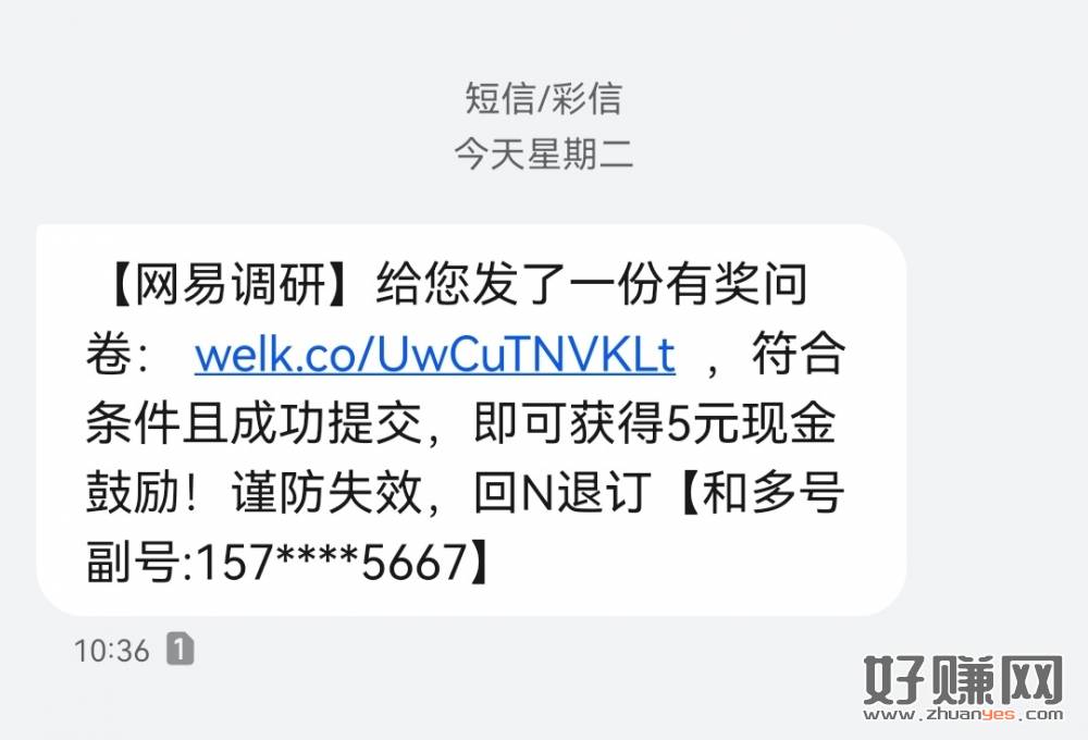 【网易调研】给您发了一份有奖问卷: welk.co/UwCuTNVKLt ,符合条件且成功提交,即可获得5元现金鼓励!