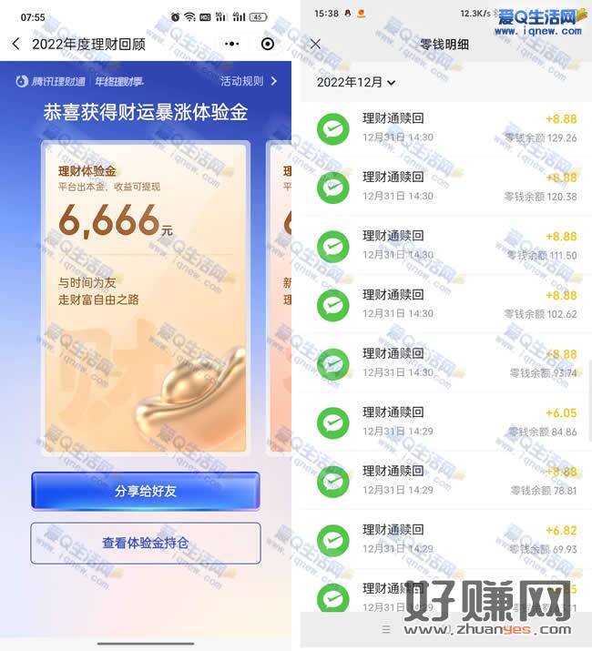 免费领理财通6666-8888体验金 盈利赎回可获得现金
