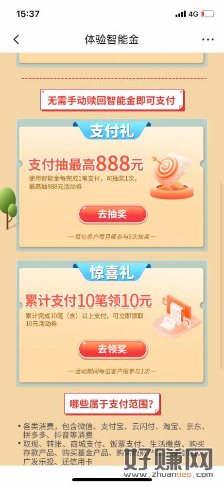 广发银行 首页 活动广场 体验智能金 保底15 左右 冲10块钱进智能金然后再去微信冲余额 每次冲一块 重复10次即可