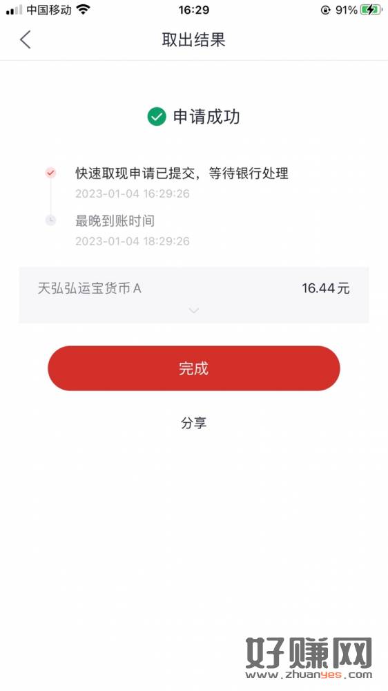 上几天的天弘基金app体验基金能提了 买入后再提,16块多。