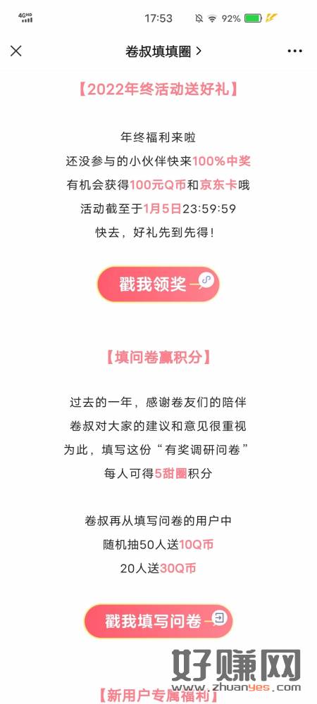 没事做的去碰碰运气,平常也会有问卷调查…