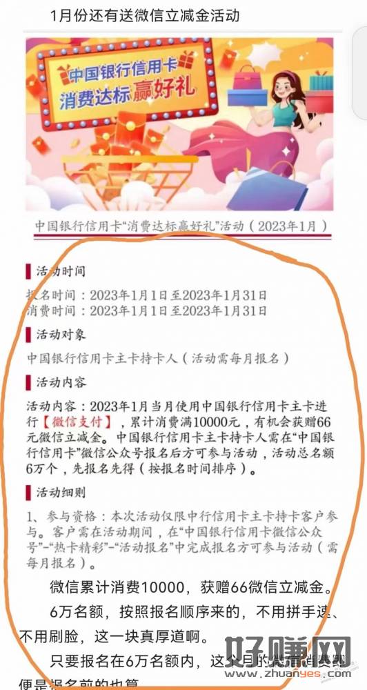 中国银行xing/用卡公众号,热卡精彩,活动报名,微信支付1万返66