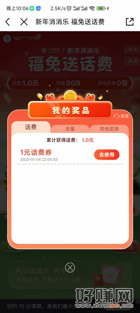 玩游戏抽,刚中1话费