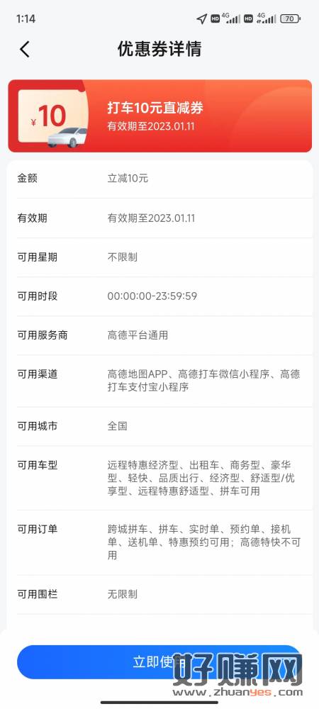 高德-底部打车-我的出行记忆-刚中10无门槛打车券