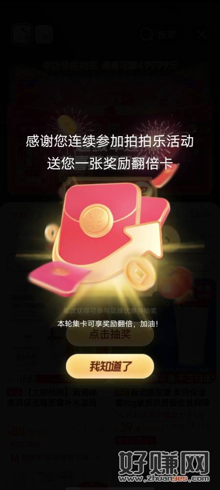 连续三天参加拍拍乐的今天可获取一张翻倍卡(必如中了一等奖15