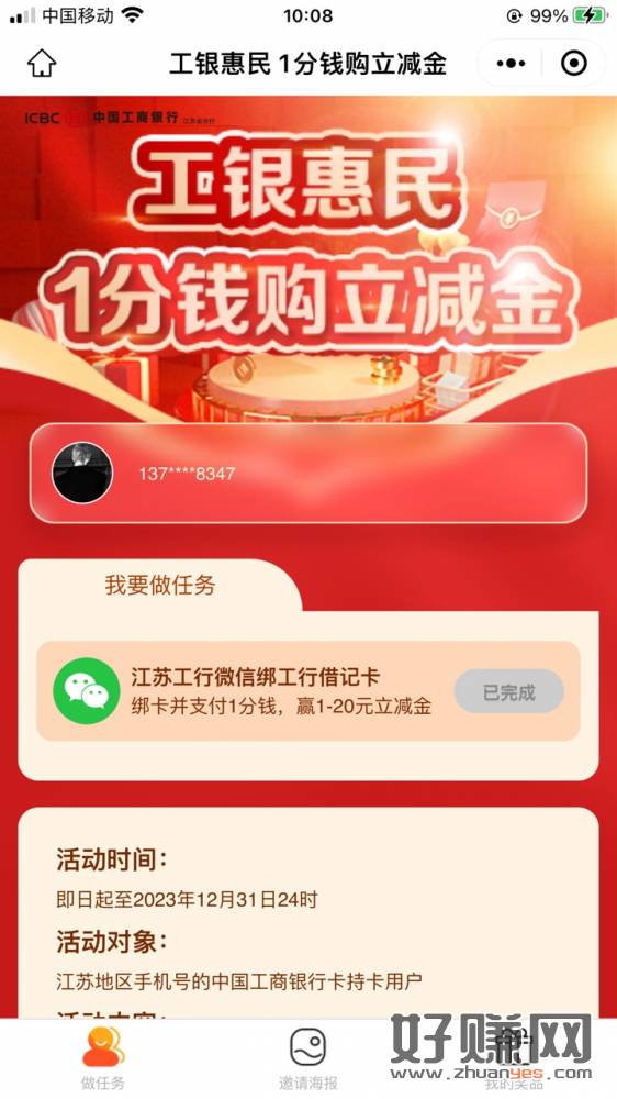 首发江苏工行1分领立减金1-20随机,是江苏工行卡就行人人有