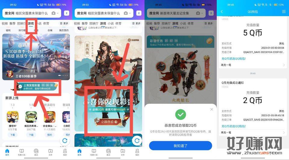 QQ浏览器 首页 游戏 下滑找到彩蛋 5v5打把人机领2Q币 (没有彩蛋就上滑刷新下)