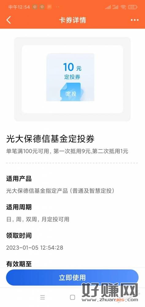 按键 开启,即投即扣,确认后就赎回也能赚个几块钱。记得终止定投。