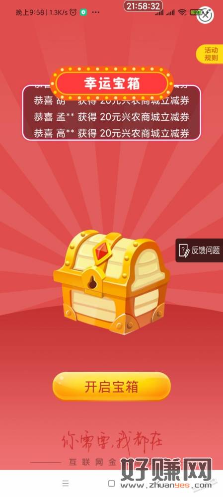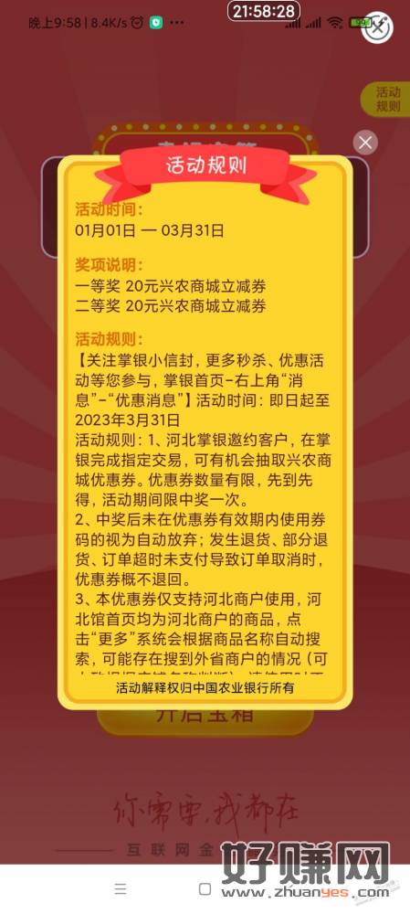 河北农行转账中20元商城券