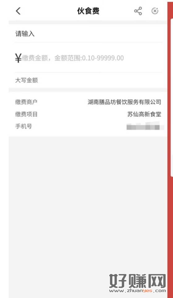 农行飞湖南郴州,缴伙食 模版看图 中18.8