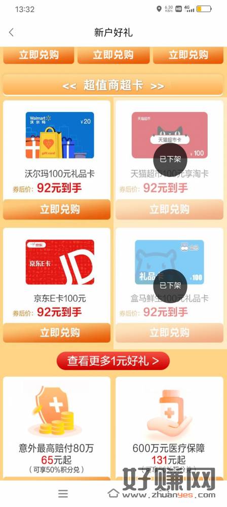限广发银行广发商城新用户领8元券通用券可以卖实物1元卖美团滴滴10元券。E卡沃尔玛看好再卖要付92块钱,下完首单还会返券不知道会不会返。