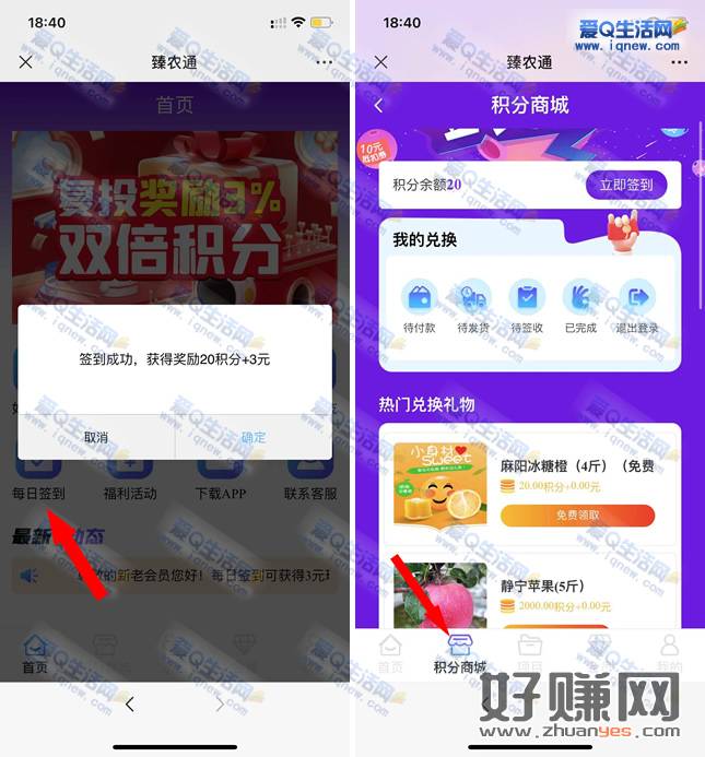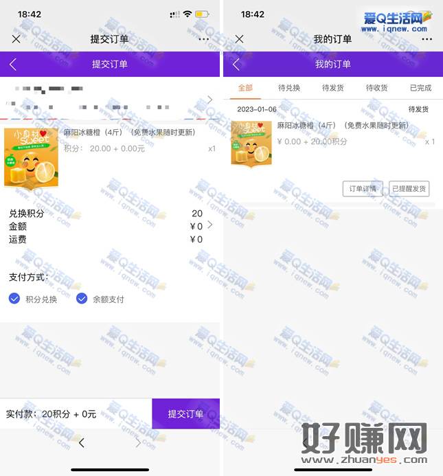 亲测用20积分兑换橙子,可在积分商城我的兑换里面查看订单