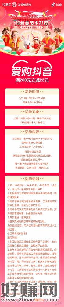 抖音工行xing/用卡 200—23 名额很多