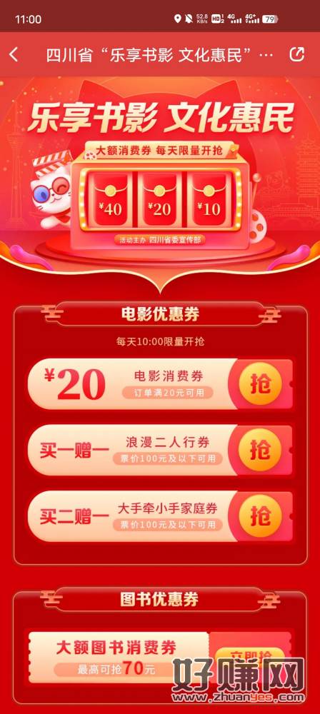 猫眼app,四川的用户去抢,横幅第一个,满20减20,现在还