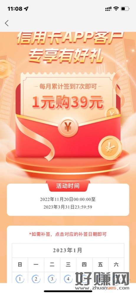 路径:邮储xing/用卡app-生活-左上角定位北京-下拉-签到1购39元