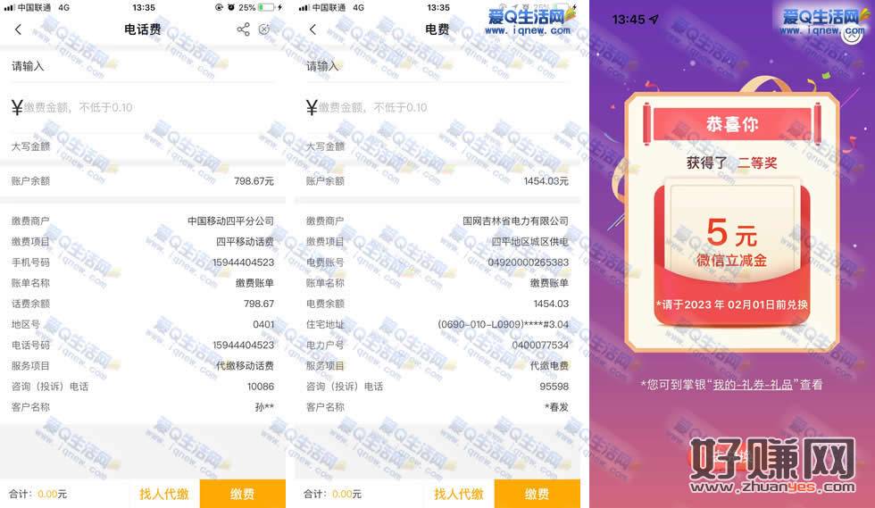 吉林四平农行掌银用户-农行APP-生活-生活缴费-需要按照图上地区缴费-缴费电费+话费 0.1元抽奖 一个缴费抽一次 总共抽2次