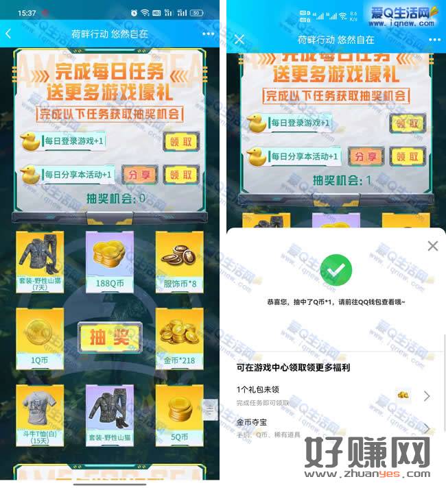 和平精英有角色的去手Q打开活动地址 下拉 完成登录+分享任务 可以抽Q币 非必中