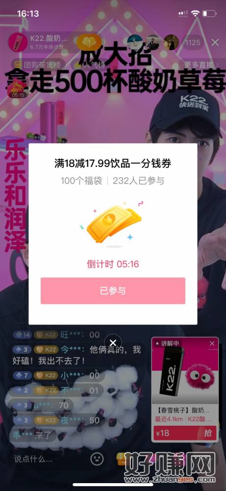 抖音直接搜索k22酸奶即可!正在直播抢!