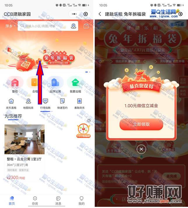 亲测1元立减金秒到 建融家园抽最高500元立减金