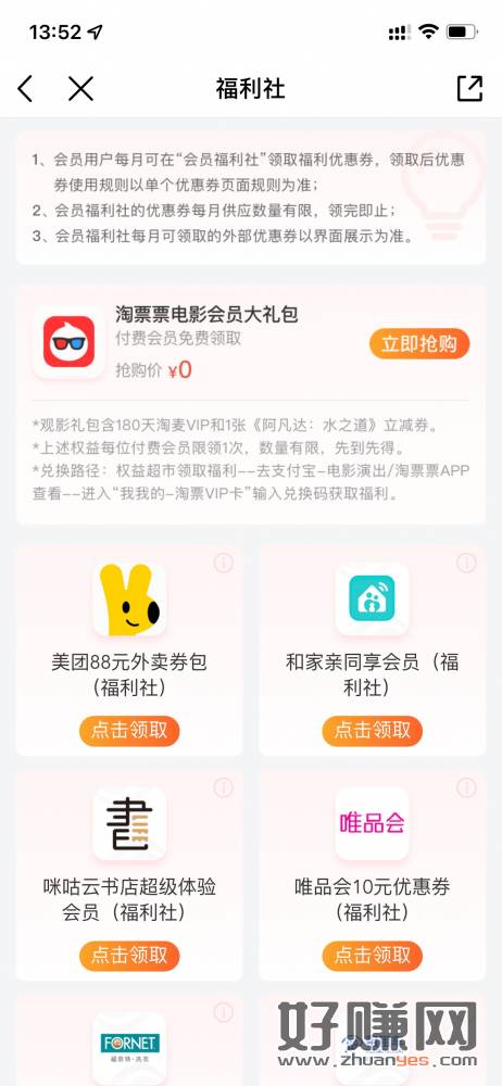 移动用户免费领6个月淘票票VIP会员,领取后是兑换码,去支付