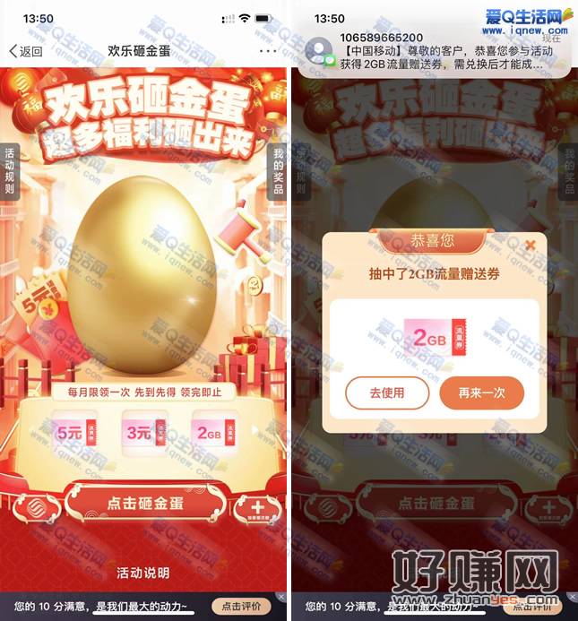 移动砸金蛋抽话费/流量 亲测2GB流量秒到