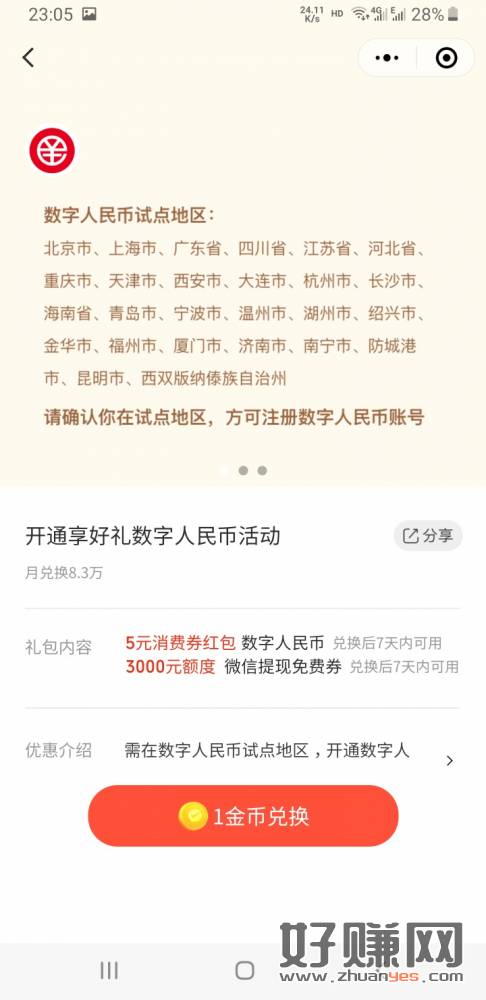 vx小程序 支付有优惠 “提现免费券”下方第三个数字人民币,