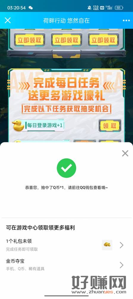 1.腾讯游戏人生抽奖,认Q币、红包