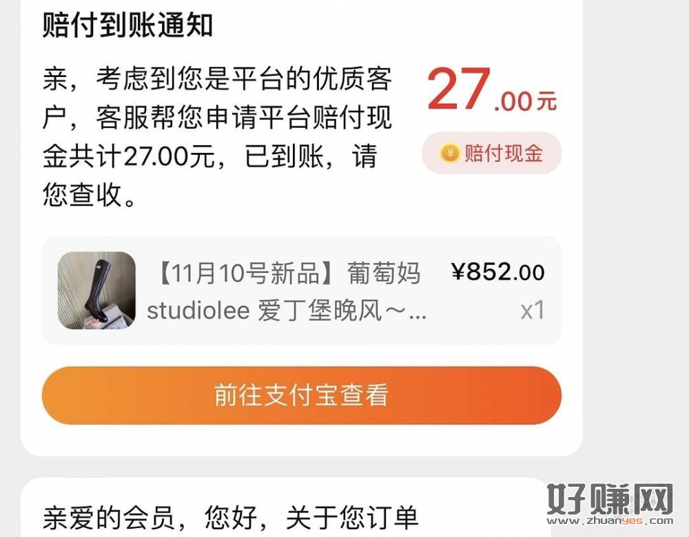 找专属客服 发送已退货无运费险的订单 申请退运费
