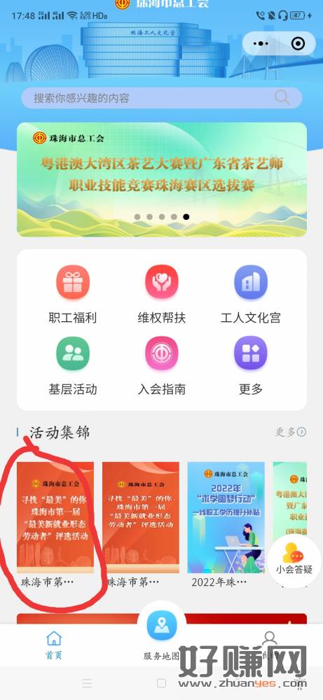 微信小程序搜索珠海工会,进去以后看我发的图那个位置进去投票,