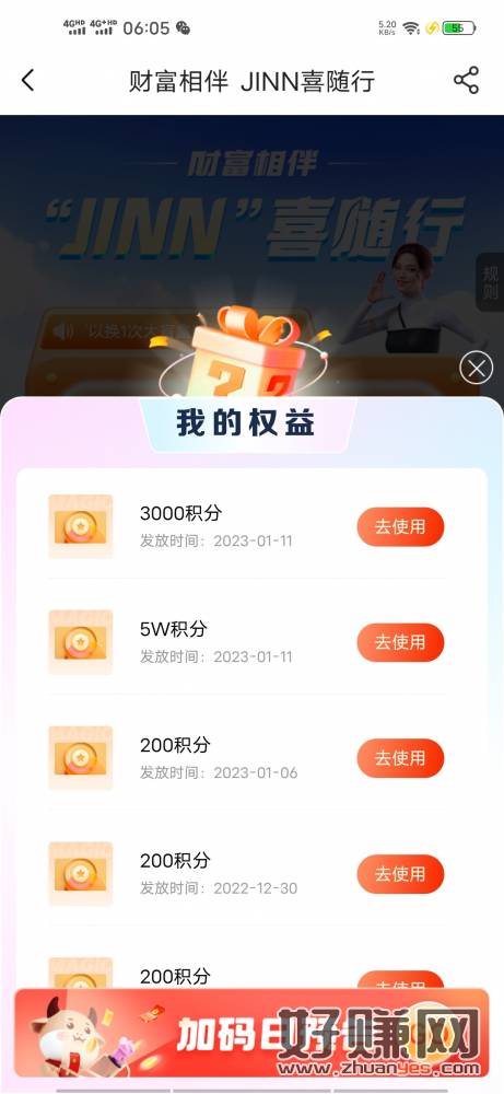 中金财富活动中心第一个今天加码,5次抽奖机会观一次大盲盒,刚中5w积分,换了50e卡,需要前面每天去签到的才有抽奖机会!