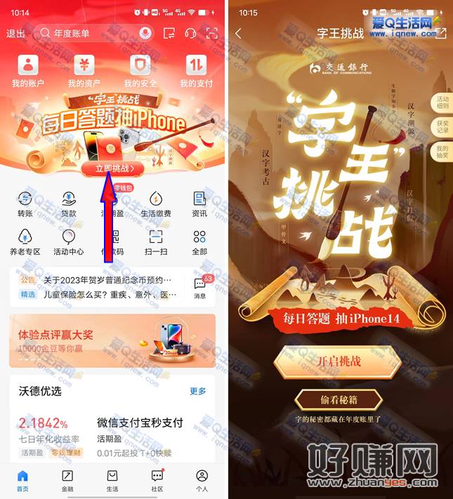 交行APP-首页顶部横幅【每日答题抽iphone】-开启挑战