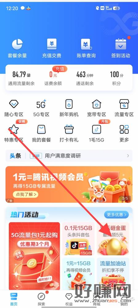 移动现在必得3元话费。来晚没有