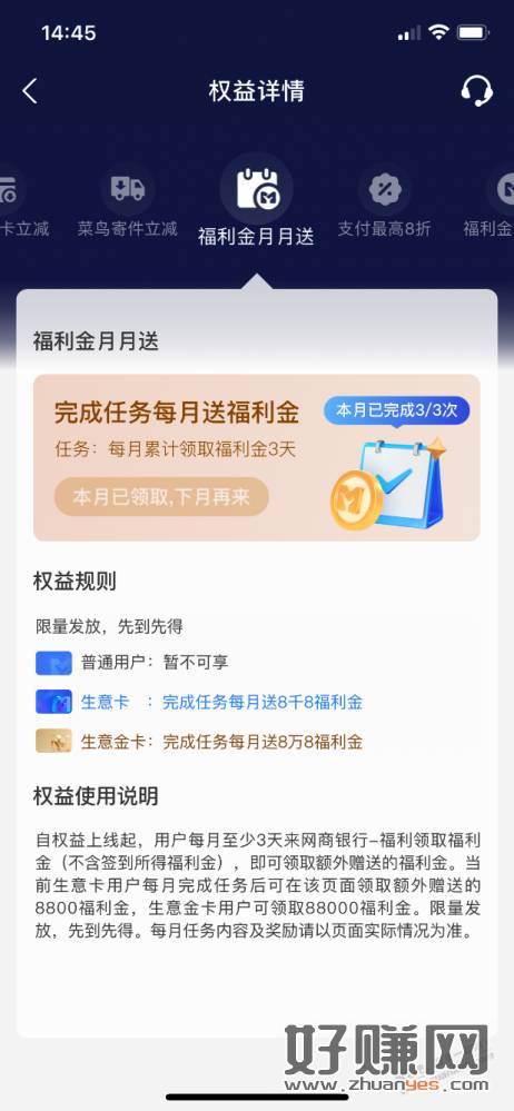 支付宝,网商银行,生意金卡,全部权益,福利金月月送