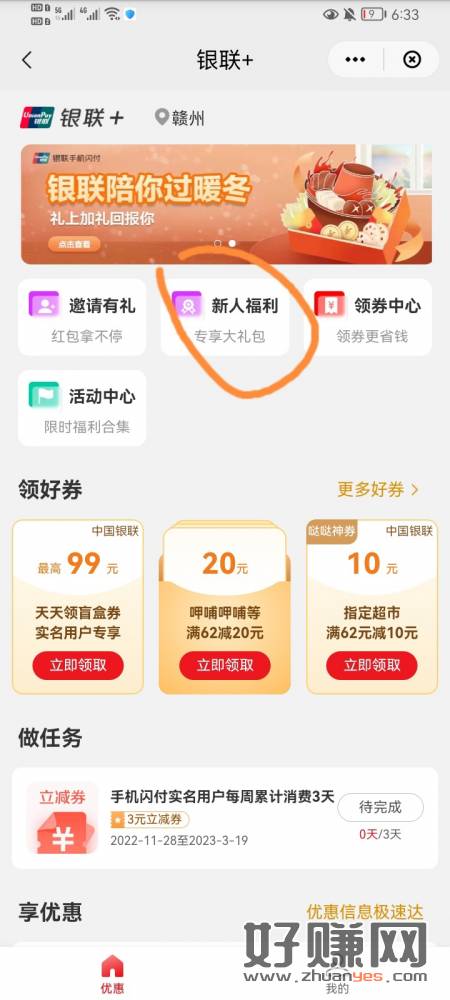 刚才没领到10—5的去云闪付搜银联福利社可以领