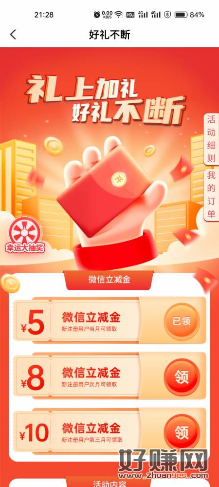 工行月月花达标抽99元立减金