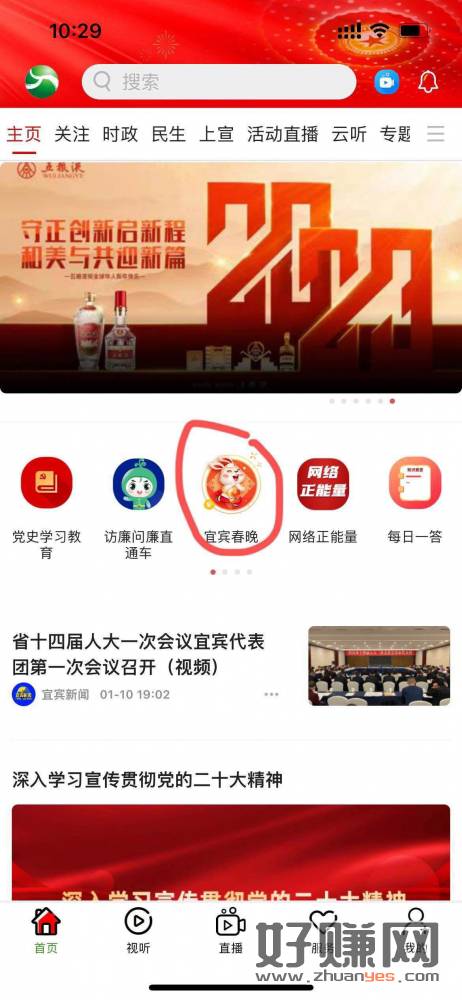 宜人宜宾app然后首页横幅-宜宾春晚-下拉小游戏拿100积分