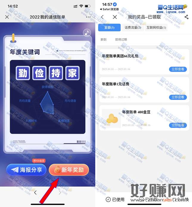 这个活动是查看电信的通信账单可以领取1-100元话费