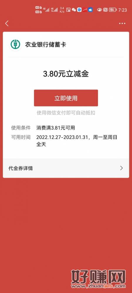 亲测10元农行微信立减金秒到 湖南农行掌银缴费抽奖