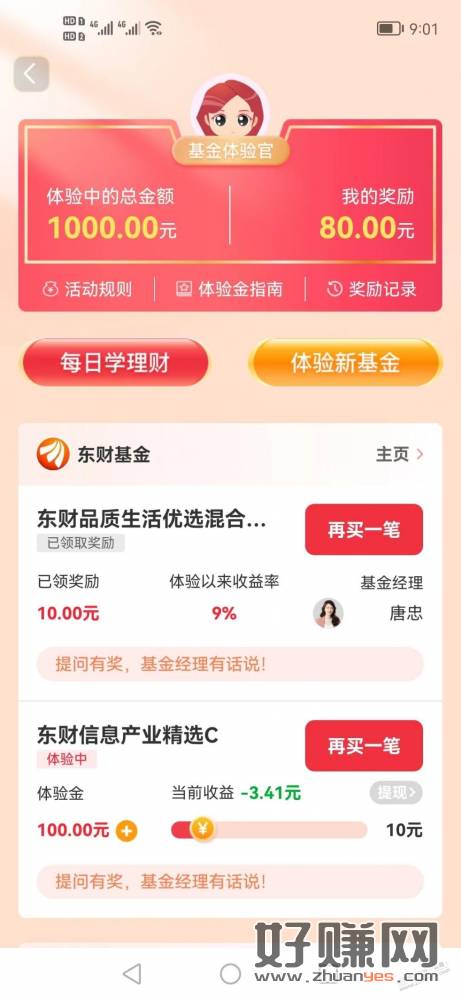 体验基金0撸的体验金收益的,有时进去看看,收益大于等于2元时,把理财芝士提升到500,可直接提现10元。如下图。