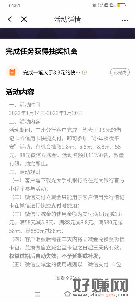 光大银行限广州,权益服务小年夜夜平安活动,低保1.8立减金最